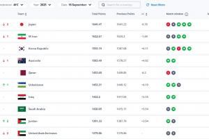 符合排名无意外!FIFA亚洲前十:8队直通世界杯,剩余2队踢附加赛