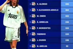 体育资讯11月5日讯 作为欧洲足坛两大豪门,利物浦和皇马曾吸引诸多球星效力。德国转会市场盘点了在两队均有效力的球员总出场次数排行,麦克马纳曼为两队共出场522次居首,皇马主帅阿隆索则以446场位居次席。